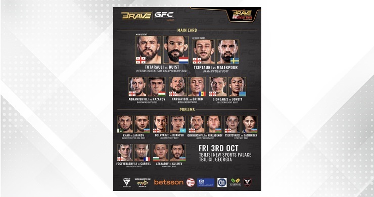 كشفت منظمة بريف البحرينية لفنون القتال المختلطة (BRAVE Combat Federation)، الأسرع نموًا والأوسع انتشارًا على مستوى العالم، عن البطاقة الكاملة للنزالات المقررة في الحدث التاريخي “بريف: جورجيا ضد العالم”، الذي تستضيفه العاصمة الجورجية تبليسي يوم الجمعة 3 أكتوبر المقبل، على أرض قصر الرياضات الجديد.