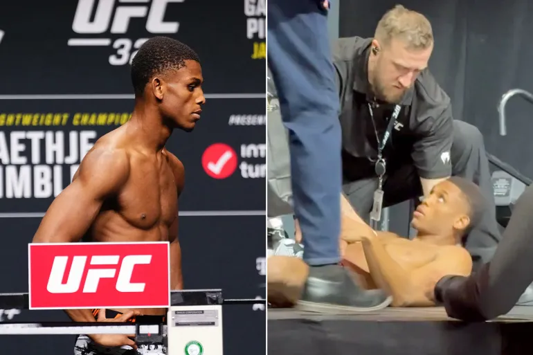وظل المقاتل (28 عاما) على الأرض لعدة دقائق، مع مؤشرات على تعرضه لإغماء ثان أثناء تلقيه الإسعافات من مسؤولي اللجنة الطبية والمنظمة.
